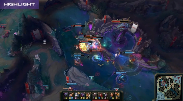 Một trong những trận đấu đáng chú ý nhất của tuần này, chắc chắn sẽ là trận đối đầu T1 – HLE. Cả hai đội đều đã vào được playoffs nhưng mục tiêu top 2 của họ vẫn còn nguyên và hứa hẹn vẫn sẽ là các cuộc đối đầu căng thẳng. Sau ván đấu thứ nhất, T1 đã vươn lên dẫn trước dù họ để mất lợi thế rất nhiều vào tay HLE ở giai đoạn đầu và giữa trận. Nhưng chiến thắng của T1 có phần không trọn vẹn 100% khi có bug nặng lại xuất hiện.