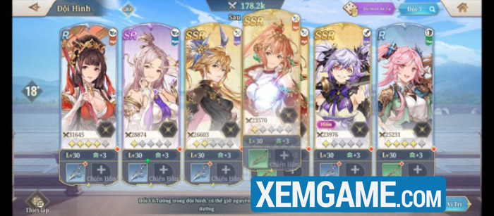 Một lối build thú vị khác là các đội hình “full nữ tướng”, vừa đẹp mắt vừa hiệu quả. Bạn có thể kết hợp Thái Văn Cơ hoặc Đại Kiều làm hồi máu, Bạch Lộc và Trương Tình Thái đảm nhiệm chống chịu, Lữ Linh Khởi hoặc Tôn Thượng Hương gây sát thương chính, trong khi Bộ Luyện Sư và Chân Cơ đảm nhận vai trò DPS phụ, hỗ trợ đánh lan kèm hiệu ứng khống chế. Các đội hình nữ thường rất đa dụng, dễ phối kỹ năng, đồng thời có khả năng phát triển lâu dài nếu biết đầu tư đúng hướng.