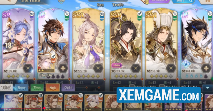 Trong số các đội hình nổi bật được cộng đồng thử nghiệm và đánh giá cao, đội hình nhà Thục là lựa chọn ổn định, cân bằng cả ở PvE lẫn PvP. Với bộ ba anh em Lưu Bị – Quan Vũ – Trương Phi vừa có thể tăng công, thủ, vừa gây sát thương đơn mục tiêu mạnh, cộng thêm Triệu Vân (SSR) hoặc Lôi Đình Triệu Vân (UR) làm chủ lực DPS, bạn hoàn toàn có thể an tâm về lượng sát thương gây ra trên đơn và đa mục tiêu.