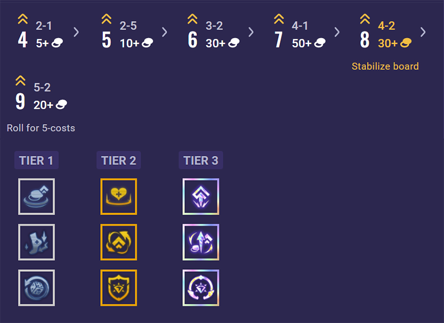 Người chơi sẽ hướng tới đội hình này khi có được Lõi nâng cấp dành riêng cho vị tướng Vi. Người chơi sẽ Slow Roll ở cấp 7 để nâng cấp Vi và Swain lên 3 sao. Ashe sẽ là chủ lực thứ 2, giúp bảo đảm sát thương trong giai đoạn cuối trận.