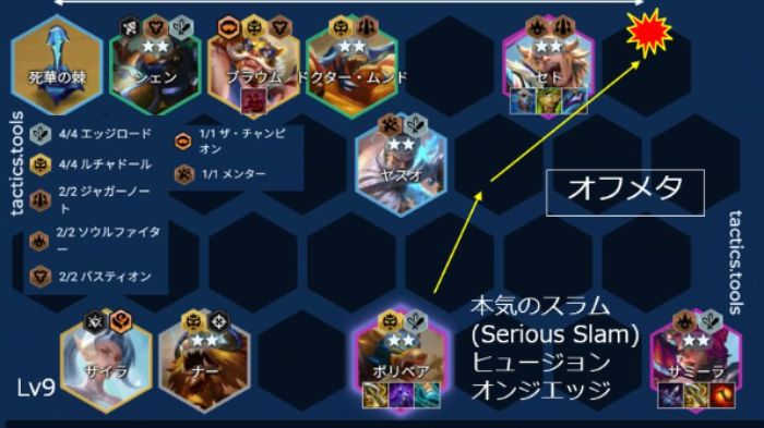 Theo đó, để chơi được bài này, ít ra chúng ta nên có một Lõi liên quan đến Đô Vật hay Thánh Ra Vẻ từ đầu thì ngưỡng sức mạnh của nó mới bằng các bài meta khác. Chúng ta có thể def bằng các khung bài Thánh Ra Dẻ Can Trường (nếu ra Lõi từ đầu) hay Đại Cơ Giáp flex (nếu có Lõi từ giữa game) như sau :