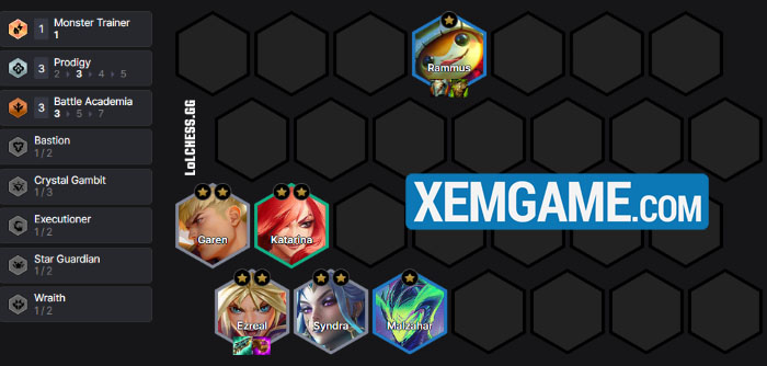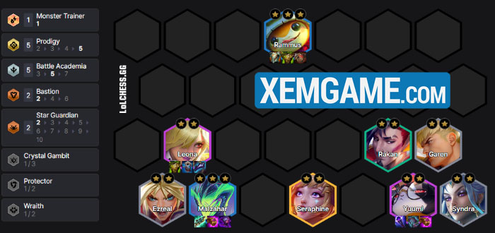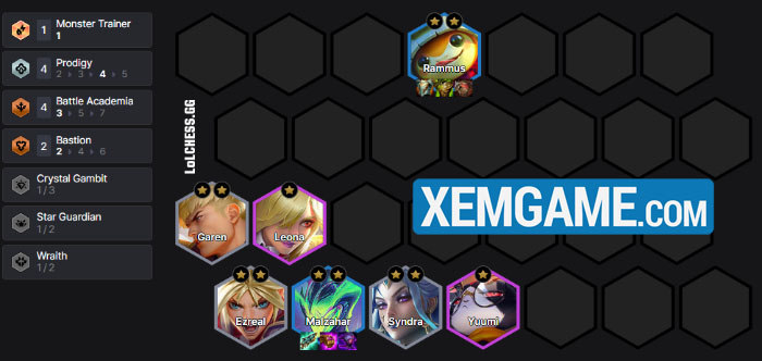 Để chơi bài này, chúng ta cần slowroll ở 7, do vậy giai đoạn đầu khi chưa có Rammus hay Malzahar thì người chơi có thể dùng bất kỳ thứ gì để def máu. Ở đây, chúng ta có thể dùng Pha Lê khi các mốc quà thưởng đều được cải thiện trong 15.1b – vậy nên thua chút lấy đồ lên cấp rồi nổ hũ và đổi bài cũng được, còn không thì đánh theo khung Học Viện vì dù sao cũng có điểm chung là Ezreal (Phi Thường):