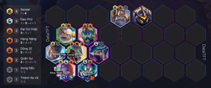 Trong meta hiện tại thì Sensei là một trong những Tộc mạnh nhất vì sự đa dụng của nó, chưa kể đến việc chủ lực chính trong Tộc này – Ryze đã có những buff khỏe trong 15.3 để đảm bảo nguồn sát thương đầu ra. Nhờ vậy đội hình mạnh nhất của nó, reroll Senna Sensei đang là một trong những đội hình dễ vào top nhất hiện tại.