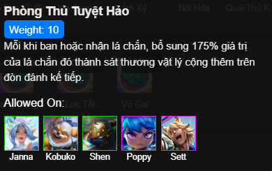 Theo đó, chiến thuật này sẽ xoay quanh Thức Tỉnh Phòng Thủ Tuyệt Hảo với hiệu ứng chuyển lá chắn mà tướng nhận thành sát thương cộng thêm trên đòn đánh. Mà bản thân kỷ năng Kobuko đã tạo lá chắn liên tục rồi, cộng thêm vài món đồ có hiệu ứng tương tự nữa như Huyết Kiếm, Móng Vuốt Sterak thì chúng ta sẽ có một con tướng siêu tượng với mỗi cú đấm cực đau.