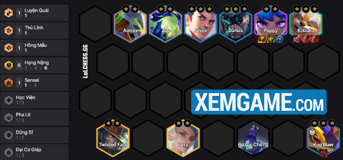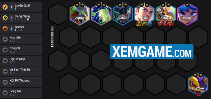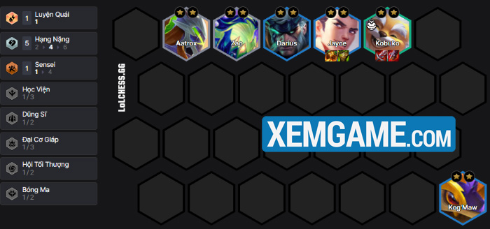 Chúng ta sẽ slow roll ở 6 và 7 để Kobuko 3 sao, trong lúc bắt thêm một số vị tướng khác là Kog’Maw, Darius, Jayce để phụ trợ.
