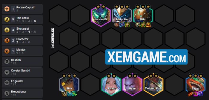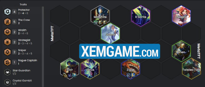 Đây là bài nhất định phải reroll (giống Chiến Đội), nhất là hiệu ứng đặc biệt của nó gắn liền với độ dát vàng của đội hình như sau :