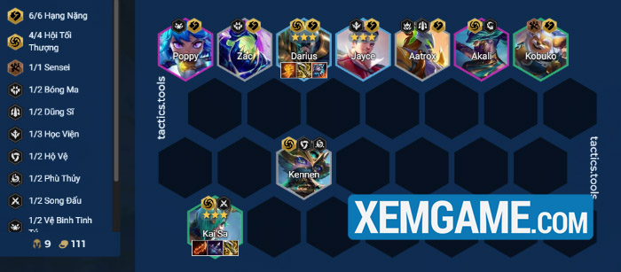 Khung bài phổ biến hơn sẽ là 4 Hội Tối Thượng và 6 Hạng Nặng, ưu tiên khi có ấn và slow roll thêm Kai’Sa 3 để phụ sát thương.
