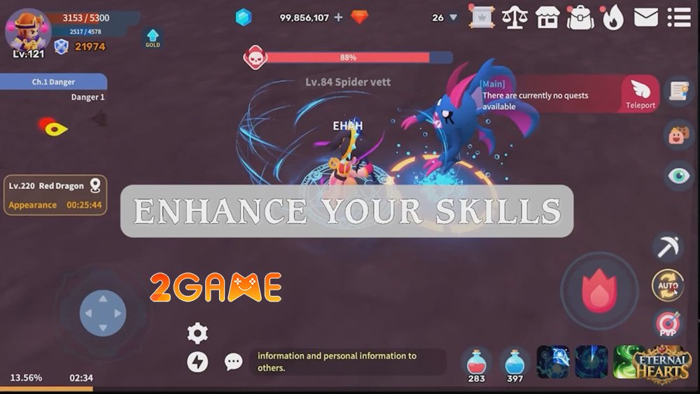 EternalHearts hiểu rằng thời gian của bạn quý giá. Hệ thống tự động phát triển liền mạch cho phép nhân vật của bạn tiến bộ ngay cả khi bạn đang bận rộn. Chỉ cần một lần chạm, bạn có thể thu thập phần thưởng nhàn rỗi, nâng cấp nhân vật và sẵn sàng cho những thử thách mới. Điều này không làm mất đi sự hấp dẫn của game, mà ngược lại, giúp bạn tập trung vào những khoảnh khắc kịch tính nhất: những trận chiến bang hội 100 đấu 100, nơi chiến lược và tinh thần đồng đội quyết định tất cả, hay những cuộc đột kích Boss thế giới đầy cam go, nơi mỗi đòn đánh đều có thể thay đổi cục diện.