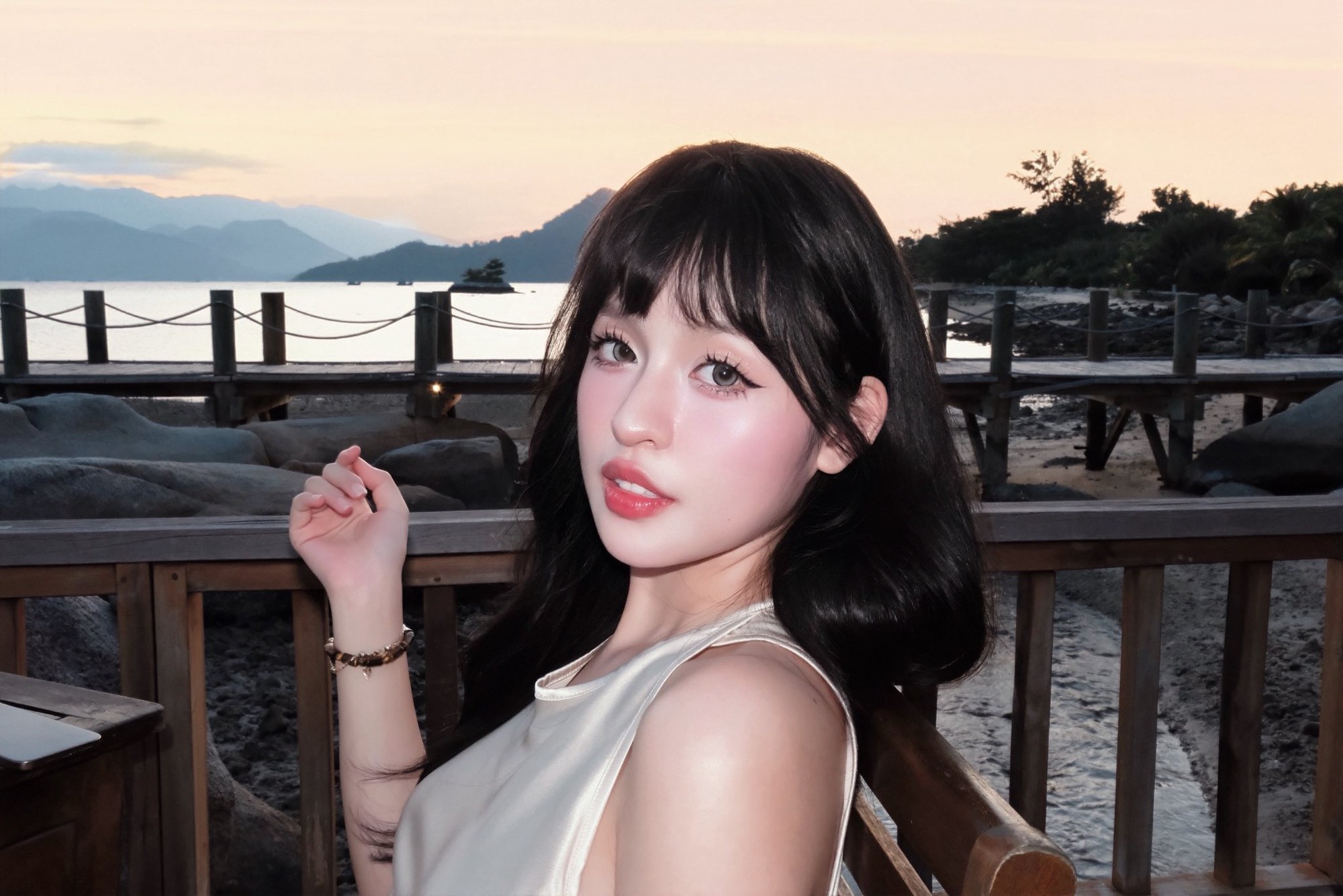 Trong loạt ảnh được chia sẻ, Trần Thanh Tâm xuất hiện với lớp trang điểm được chăm chút kỹ lưỡng, nhấn mạnh vào đôi mắt to tròn, long lanh và đôi môi căng mọng. Cô nàng lựa chọn những màu son nhẹ nhàng, tươi tắn, kết hợp cùng phấn má hồng đào, tạo hiệu ứng một gương mặt búp bê sống động. Mái tóc cũng được tạo kiểu, tô điểm thêm bằng những phụ kiện lấp lánh, đáng yêu.