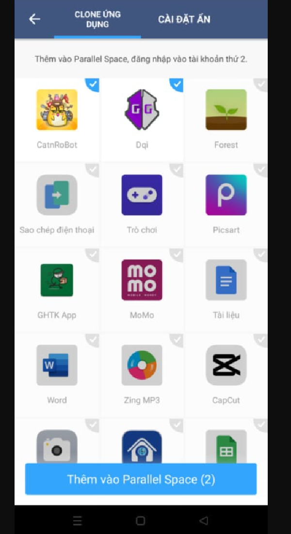 - Bước 2: Thêm ứng dụng Game Guardian và CatnRobot, sau đó hãy chọn “Thêm vào Parallel Space”.
