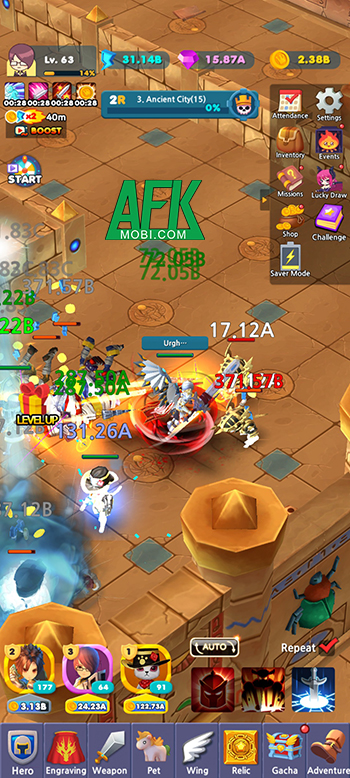 Bước vào Idle Leo bạn sẽ được cùng tổ đội anh hùng của mình bắt đầu cuộc hành trình chiến đấu, tiêu diệt bọn quái vật và vượt qua các khu vực khác nhau để phát triển sức mạnh một cách đơn giản và nhàn rỗi.