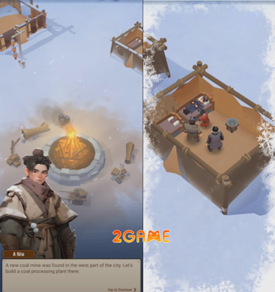 Ngay từ những phút đầu, game Kỷ Nguyên Băng Hà: 3Q Mobile đã khéo léo kéo bạn vào không khí của một thế giới Tam Quốc hoàn toàn mới. Không phải là những trận chiến liên miên hay những âm mưu chính trị rối rắm, mà là một hành trình bắt đầu từ những điều giản dị: đốt một đống lửa trại, tập hợp những người tị nạn và cùng nhau chặt gỗ, xây nhà.