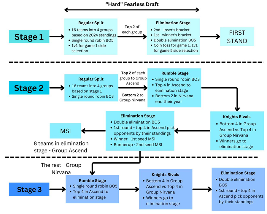 – Diễn ra từ tháng 1 tới tháng 3/2025, đội vô địch sẽ giành vé tham dự First Stand, giải LMHT quốc tế đầu tiên trong năm.