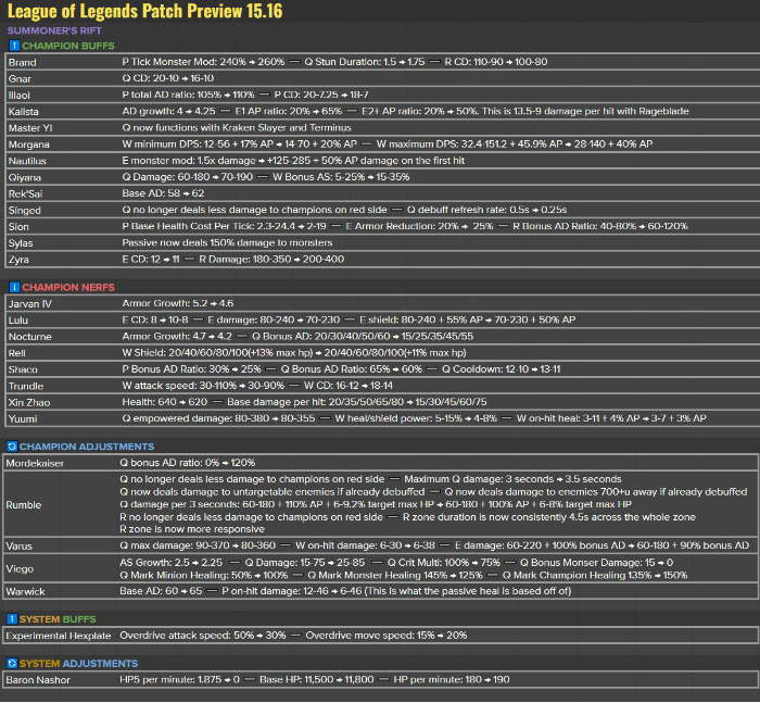 Trong phiên bản PBE 7/8 cho LMHT 15.16 ngày hôm nay, hàng loạt những thay đổi mới đã được Riot Games đưa ra để cân bằng lại meta một chút và cho những vị tướng chưa có cơ hội ra sân được sử dụng nhiều trở lại.