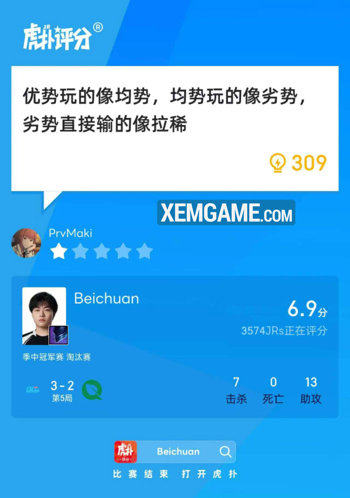 Được chấm 6.6 cho game 2 : “Khi thấy nhiều comment nói ủng hộ FLY, tôi biết là sẽ thắng chắc vì khán giả LPL cực kỳ xui xẻo, ủng hộ ai người đó nhót”