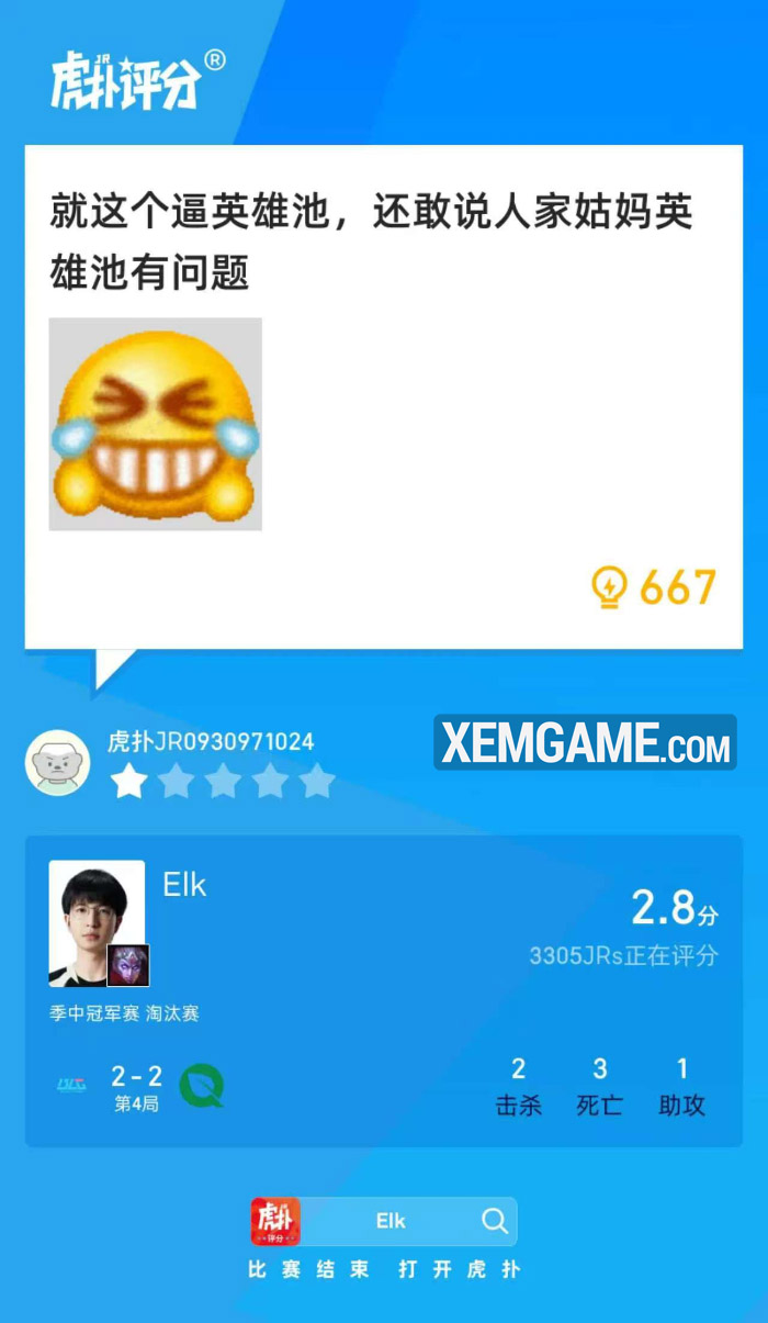 Được chấm 2.7 điểm cho Game 5 :”Nghĩ là có thể cosplay Faker”.