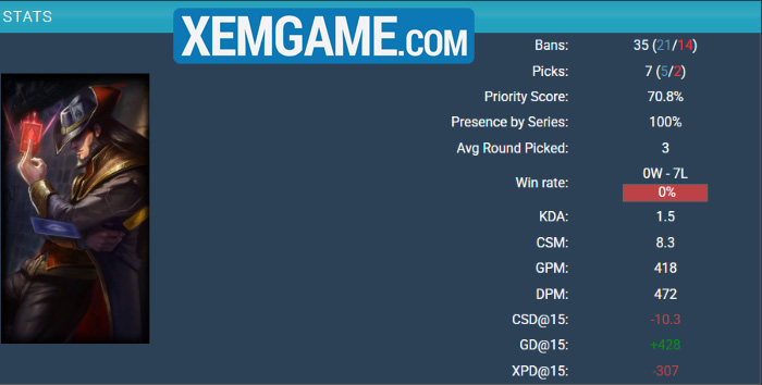 Cụ thể, ở đây chúng ta nói đến Twisted Fate và Kalista – 2 vị tướng chủ chốt trong một số chiến thuật với số lượt cấm lần lượt là 35 và 17, nhiều nhất trong dàn tướng MSI. Theo đó, không chỉ bị cấm nhiều nhất mà 2 vị tướng này còn gây ngạc nhiên là những lần hiếm hoi được chọn, chúng vẫn không có được chiến thắng nào dắt túi cả :