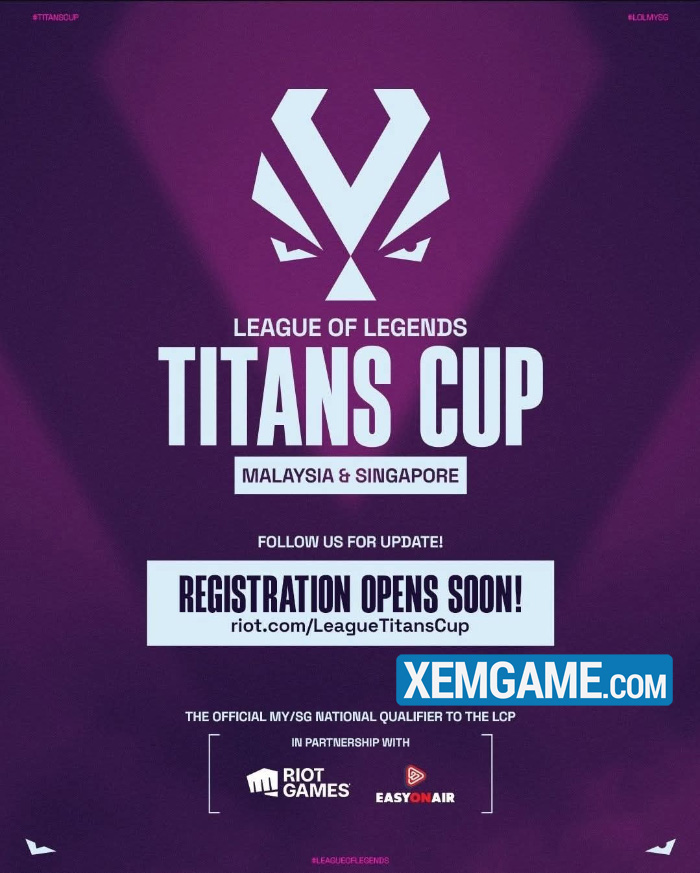 Vào ngày hôm qua, Riot Games đã thông báo về việc sẽ mở ra giải đấu Titans Cup cho khu vực Malaysia và Singapore để nhằm việc tìm ra thêm các đội tuyển khác tại khu vực này bổ sung thành viên tiềm tàng được gia nhập LCP :