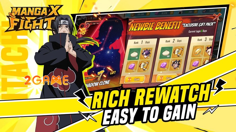 Nhưng Manga X Fight không chỉ dừng lại ở những trận chiến căng thẳng. Nó biết cách nuông chiều người chơi bằng những phần thưởng hào phóng. Chỉ cần đăng nhập, hoàn thành nhiệm vụ, hay tăng cấp, bạn sẽ nhận được những món chiến lợi phẩm giá trị, từ trang bị hiếm đến những vật phẩm giúp nâng tầm sức mạnh đội hình.