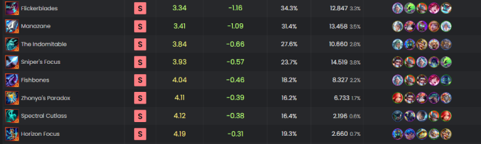 Để nắm bắt meta nhanh chóng, hãy cùng mình điểm qua một số bảng xếp hạng cho những thứ mạnh mẽ đang được đông đảo người chơi tin dùng và có thứ hạng cao.
