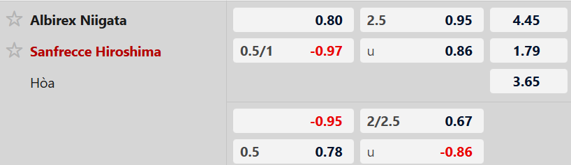 Nhận định tài xỉu Albirex Niigata vs Sanfrecce Hiroshima: