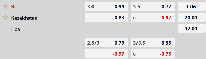 Soi kèo Châu Á Bỉ vs Kazakhstan: