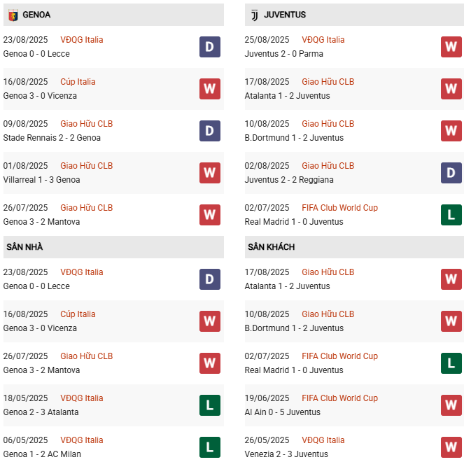 Họ cũng chỉ thua một lần trong 10 lần gặp Genoa ở giải đấu. Juventus giành được số điểm tối đa ở mùa giải trước – lịch sử cho thấy họ có thể giành chiến thắng tại Marassi ở bất cứ thời điểm nào.