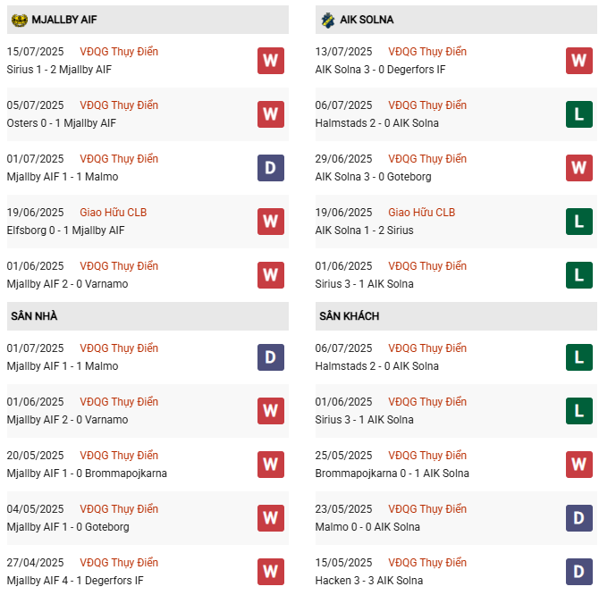 Toàn bộ 4 trận sân nhà vừa qua thuộc giải VĐQG Thụy Điển của Mjallby đều không xuất hiện nhiều hơn 2 bàn thắng. Kịch bản dần trở thành quen thuộc này dự kiến tái diễn khi Mjallby so tài cùng AIK Solna vào Chủ nhật (20/7).