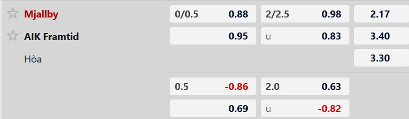 Mjallby thắng kèo lẫn tỷ số tới 5 trong số 6 trận sân nhà gần đây thuộc giải VĐQG Thụy Điển. AIK Solna thua kèo lẫn tỷ số cả 2 trận sân khách vừa qua thuộc khuôn khổ Allsvenskan. So với AIK Solna thì Mjallby hứa hẹn mang tới nhiều niềm tin hơn.