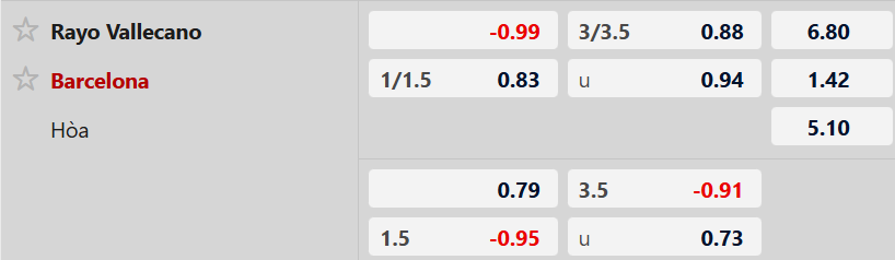 Thống kê phong độ Rayo Vallecano vs Barcelona:
