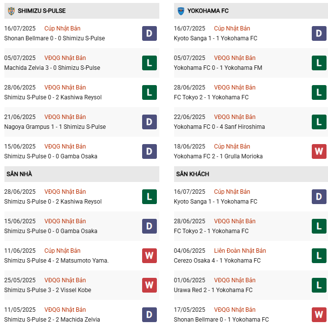 Thống kê phong độ Shimizu S-Pulse vs Yokohama FC: