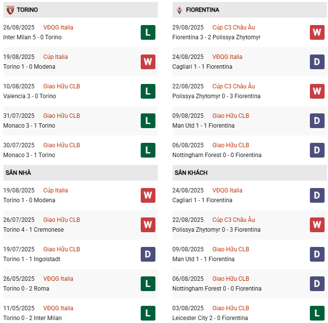 – Fiorentina thắng 4 thua 2 hòa 4 trong 10 lần gần nhất chạm mặt Torino.