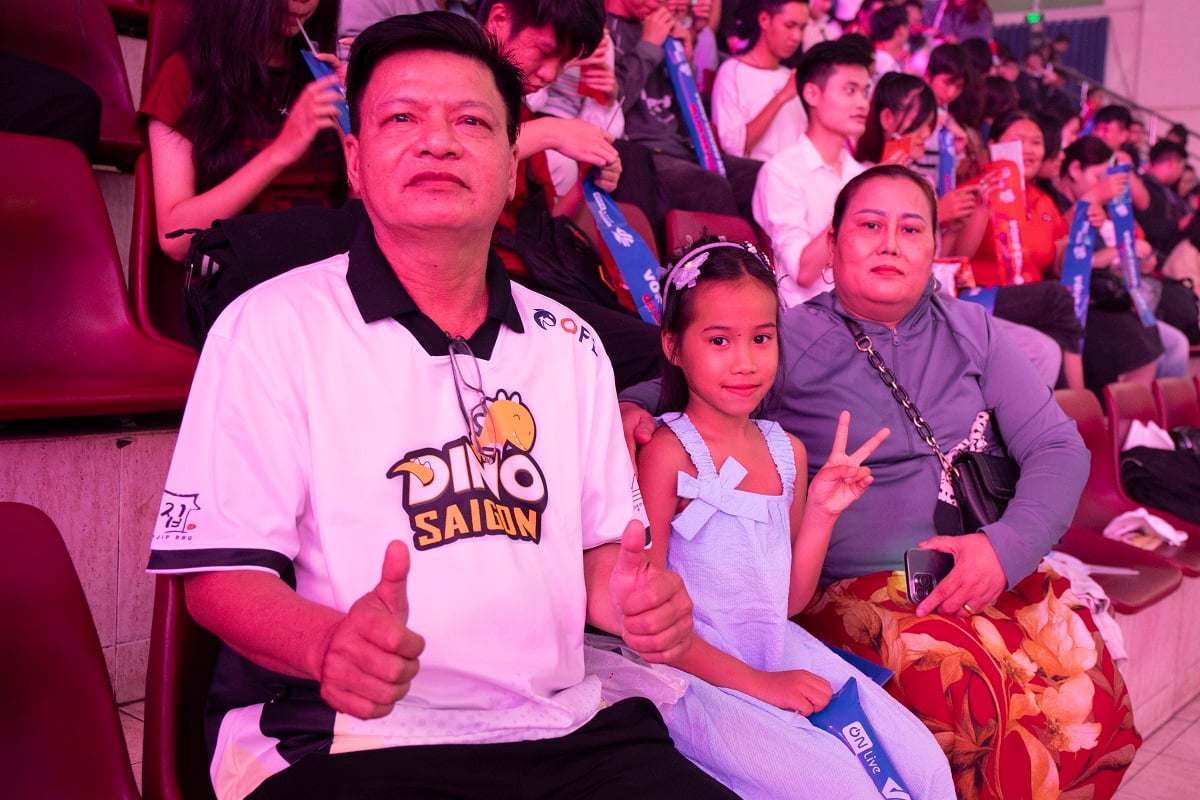 Bố (phải) và chú của Bie cổ vũ cho Saigon Dino
