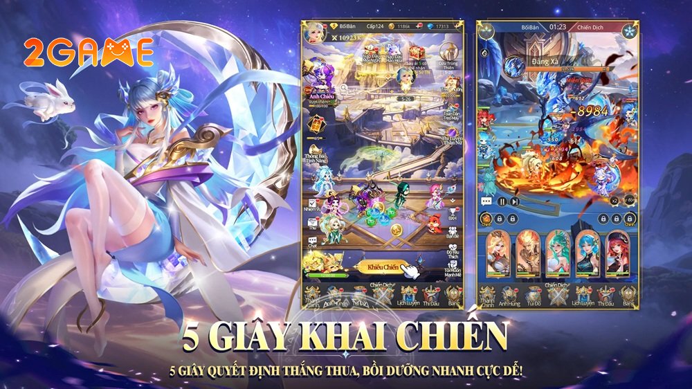 Phục Yêu Sư Mobile mang đến nhịp điệu chiến đấu nhanh như chớp, nơi chỉ 5 giây có thể định đoạt thắng bại. Với lối chơi thẻ bài kết hợp phong cách MOBA, bạn tự do sắp xếp đội hình 5 người, tung chiêu chiến thuật để xoay chuyển cục diện. Cơ chế Idle giúp bạn dễ dàng làm quen, tuy nhiên mỗi trận đấu là một màn đấu trí căng thẳng, nơi từng quyết định đều có thể đưa bạn lên đỉnh vinh quang hoặc xuống vực thất bại, do đó bạn cần vận dụng chiến thuật hợp lý.