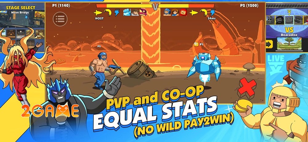 Punch TV: Fighting Game Show mang đến trải nghiệm PvP trực tuyến đỉnh cao, nơi bạn có thể xây dựng một đội ba chiến binh để đối đầu với người chơi từ khắp nơi trên thế giới hoặc thử thách AI. Điểm đáng chú ý là tất cả các nhân vật trong chế độ PvP đều có chỉ số cân bằng, đảm bảo không có yếu tố “pay-to-win”. Điều này tạo ra một sân chơi công bằng, nơi kỹ năng và chiến thuật của bạn quyết định chiến thắng, thay vì ví tiền.