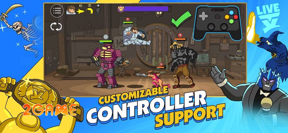 Nếu bạn yêu thích tinh thần đồng đội, chế độ Co-op thời gian thực của game Punch TV: Fighting Game Show chắc chắn sẽ làm bạn hài lòng. Bạn có thể hợp sức cùng tối đa ba người chơi khác để chinh phục các thử thách đặc biệt trong chế độ này. Mỗi trận đấu co-op là một cuộc chiến đầy kịch tính, nơi sự phối hợp ăn ý giữa các thành viên sẽ quyết định thắng bại. Đây là cơ hội tuyệt vời để cùng bạn bè hoặc thậm chí những người chơi xa lạ tạo nên những kỷ niệm khó quên.