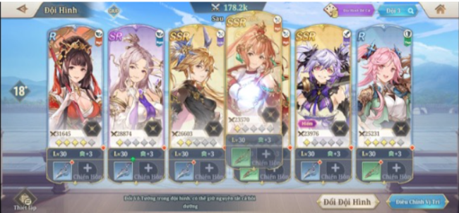 Một trong những lý do người chơi nên và cần sử dụng tướng cấp thấp để nâng lên UR, vì cơ chế của game không cho phép bạn đưa vào đội hình quá 3 tướng phẩm chất gốc UR (như tướng Triệu Vân trong bản Alpha Test này). Với tối đa 6 nhân vật trong một đội hình, người chơi sẽ phải lựa chọn thêm 3 tướng từ cấp dưới để nâng lên UR, thì sức mạnh mới được tối ưu nhất. Dĩ nhiên, các tướng này nên có sự liên kết về Duyên phận để nhận thêm các buff có lợi hoặc chiêu thức bồi tạo sát thương thêm.