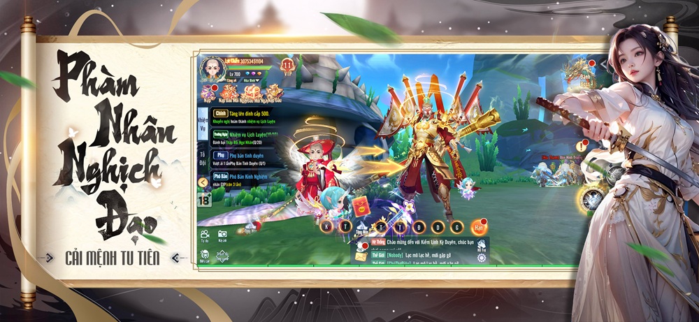 Phàm Nhân Nghịch Đạo – Cải Mệnh Tu Tiên. Bước vào thế giới tu tiên chân thực, bạn sẽ nhập vai ngũ đại tông môn là Đại Âm Tự, Kiếm Tiên, Thần Quân, Long Tộc và Tiêu Dao. Triệu hồi nguyên thần đi PK liên sever, công thành chiến, đồ họa 3D tuyệt đẹp săn boss vạn người không lag, vào game chọn class tu hành, kết hôn tăng nghìn lần tu vi, chuyển chức 4 lên Thần. Hệ thống auto tự động làm nhiệm vụ, nhặt đồ ngon. Thế giới tiên cảnh sống động đang chờ bạn, nơi bạn thể hiện bản lĩnh và khẳng định vị thế độc tôn.