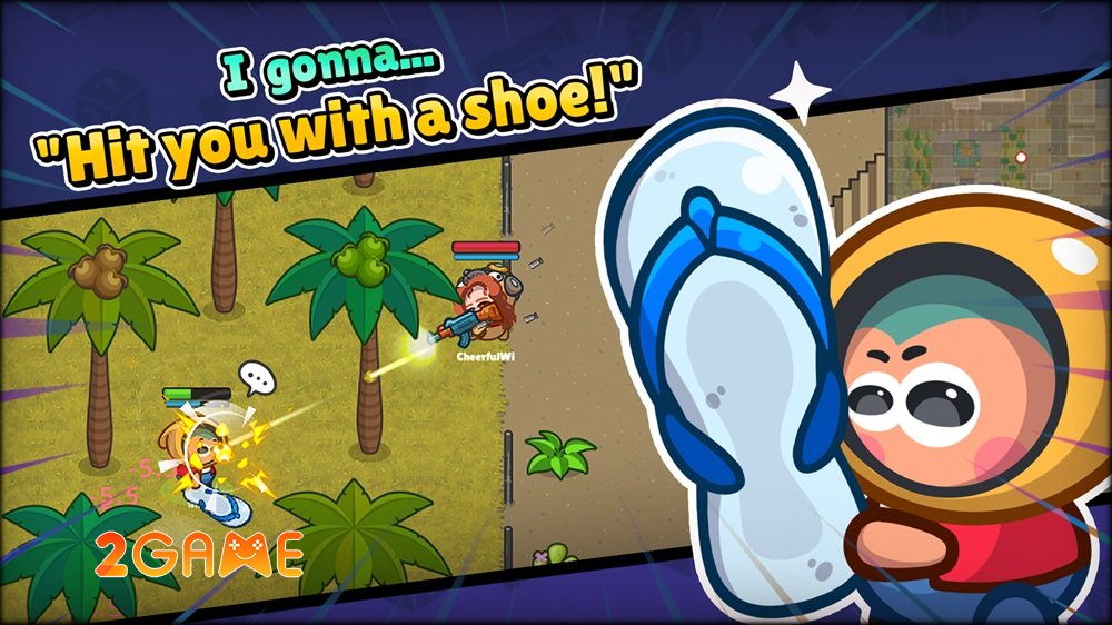 Hãy tưởng tượng bạn thu nhỏ lại thành một anh hùng tí hon, cầm trên tay không phải súng ống thông thường mà là những món vũ khí “điên rồ” như quả sầu riêng nổ tung hay đôi dép lê bay vèo vèo, lao vào cuộc chiến hỗn loạn vô cùng sôi động của tựa game Tiny Little Royale: Battle Fun.